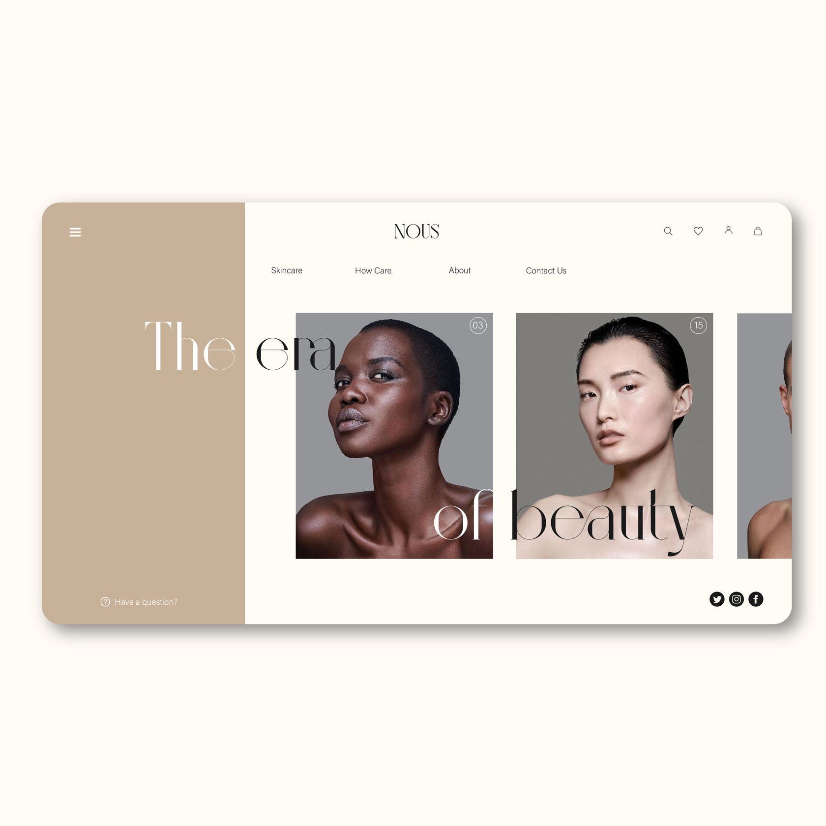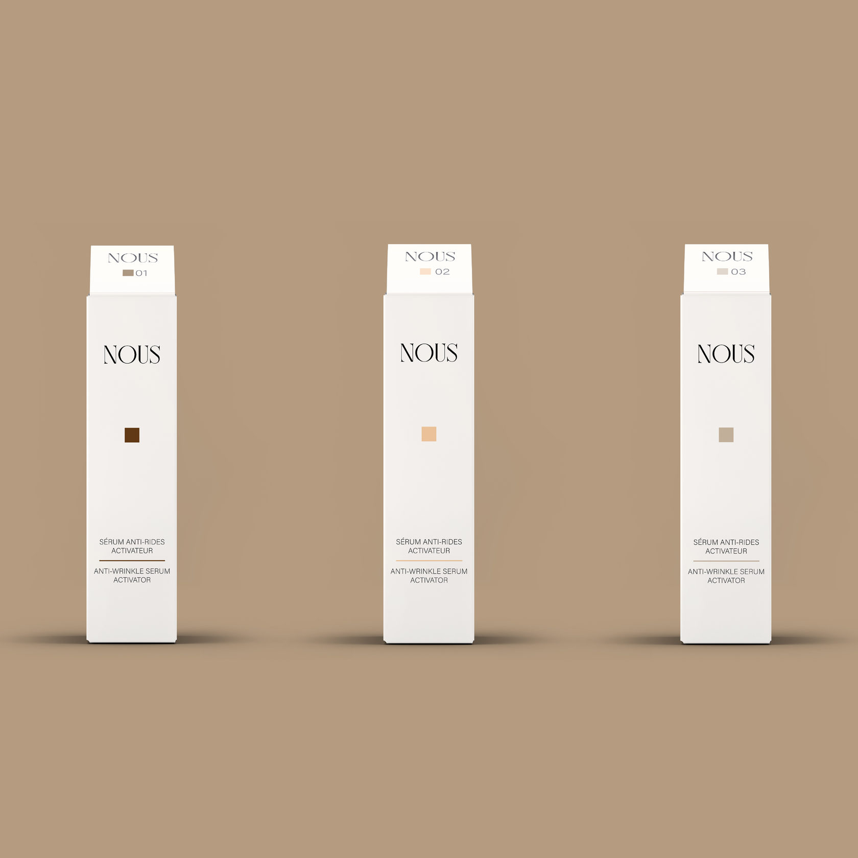Brand identity, package and e-commerce website design for french brand nous: premium cosmetics for every skin type.